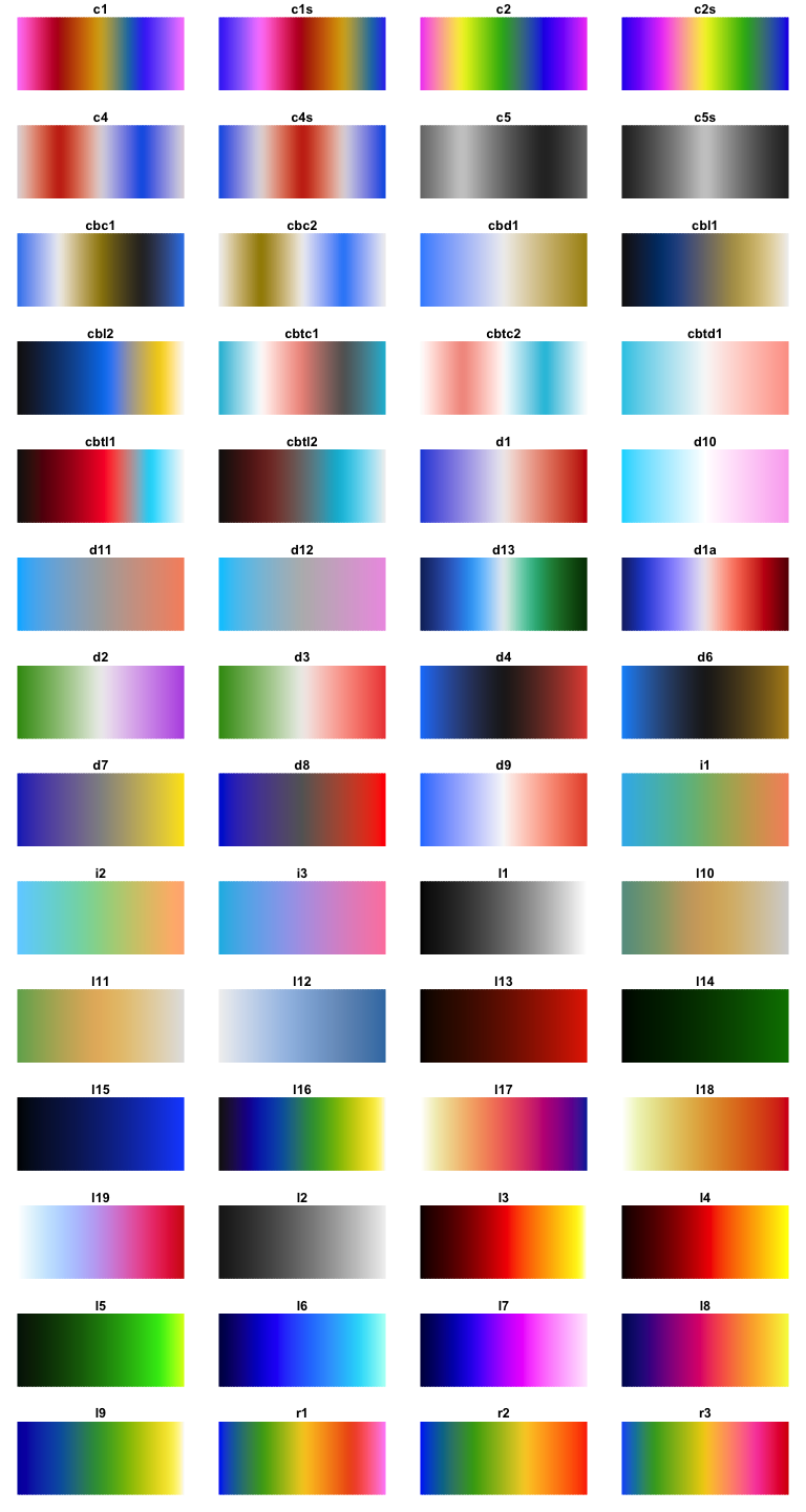 l3, long: linear_kryw_0-100_c71_n256l4, long: linear_kry_0-97_c73_n256l9, long: linear_bgyw_20-98_c66_n256l14, long: linear_ternary-green_0-46_c42_n256l16, long: linear_kbgyw_5-98_c62_n256l17, long: linear_worb_100-25_c53_n256l18, long: linear_wyor_100-45_c55_n256l19, long: linear_wcmr_100-45_c42_n256d1a, long: diverging_bwr_20-95_c54_n256d13, long: diverging_bwg_20-95_c41_n256cbl1, long: linear-protanopic-deuteranopic_kbjyw_5-95_c25_n256cbl2, long: linear-protanopic-deuteranopic_kbw_5-98_c40_n256cbd1, long: diverging-protanopic-deuteranopic_bwy_60-95_c32_n256cbc1, long: cyclic-protanopic-deuteranopic_bwyk_16-96_c31_n256cbc2, long: cyclic-protanopic-deuteranopic_wywb_55-96_c33_n256cbtl1, long: linear-tritanopic_krjcw_5-98_c46_n256cbtl2, long: linear-tritanopic_krjcw_5-95_c24_n256cbtd1, long: diverging-tritanopic_cwr_75-98_c20_n256cbtc1, long: cyclic-tritanopic_cwrk_40-100_c20_n256cbtc2, long: cyclic-tritanopic_wrwc_70-100_c20_n256c1 = cyclic_mrybm_35-75_c68_n256c1s = cyclic_mrybm_35-75_c68_n256_s25c2 = cyclic_mygbm_30-95_c78_n256c2s = cyclic_mygbm_30-95_c78_n256_s25c4 = cyclic_wrwbw_40-90_c42_n256c4s = cyclic_wrwbw_40-90_c42_n256_s25c5 = cyclic_grey_15-85_c0_n256c5s = cyclic_grey_15-85_c0_n256_s25d1 = diverging_bwr_40-95_c42_n256d2 = diverging_gwv_55-95_c39_n256d3 = diverging_gwr_55-95_c38_n256d4 = diverging_bkr_55-10_c35_n256d6 = diverging_bky_60-10_c30_n256d7 = diverging-linear_bjy_30-90_c45_n256d8 = diverging-linear_bjr_30-55_c53_n256d9 = diverging_bwr_55-98_c37_n256d10 = diverging_cwm_80-100_c22_n256d11 = diverging-isoluminant_cjo_70_c25_n256d12 = diverging-isoluminant_cjm_75_c23_n256r1 = rainbow_bgyrm_35-85_c69_n256r2 = rainbow_bgyr_35-85_c72_n256r3 = diverging-rainbow_bgymr_45-85_c67_n256i1 = isoluminant_cm_70_c39_n256i2 = isoluminant_cgo_80_c38_n256i3 = isoluminant_cgo_70_c39_n256l1 = linear_grey_0-100_c0_n256l2 = linear_grey_10-95_c0_n256l5 = linear_green_5-95_c69_n256l6 = linear_blue_5-95_c73_n256l7 = linear_bmw_5-95_c86_n256l8 = linear_bmy_10-95_c71_n256l10 = linear_gow_60-85_c27_n256l11 = linear_gow_65-90_c35_n256l12 = linear_blue_95-50_c20_n256l13 = linear_ternary-red_0-50_c52_n256l15 = linear_ternary-blue_0-44_c57_n256diverging-isoluminant_cjm_75_c24_n256diverging-rainbow_bgymr_45-85_c67_n256diverging_gkr_60-10_c40_n256rainbow_bgyr_35-85_c73_n256rainbow_bgyrm_35-85_c71_n256linear_bgy_10-95_c74_n256linear_bgyw_15-100_c67_n256linear_bgyw_15-100_c68_n256linear_bmw_5-95_c89_n256linear_bmy_10-95_c78_n256linear_kry_5-95_c72_n256linear_kry_5-98_c75_n256linear_kryw_5-100_c64_n256linear_kryw_5-100_c67_n256linear_ternary-green_0-46_c42_n256RColorBrewer