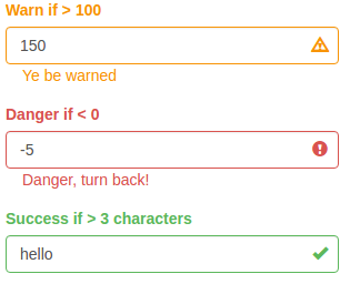 install.packages("shinyFeedback")devtools::install_github("merlinoa/shinyFeedback", build_vignettes = TRUE)# load packagelibrary(shinyFeedback)# read intro vignettebrowseVignettes(package = "shinyFeedback")I would like to add support for more of the standard shiny input bindings and for several of the input bindings provided with the shinyWidgets package.